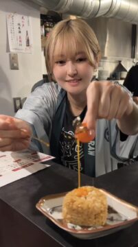 卵黄をのせた「熊のぷる玉おにぎり」で〆も満足♪
