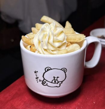 “くーま君”イラストが可愛いカップに入った「黒胡椒トリュフクリームのポテトフライ」
